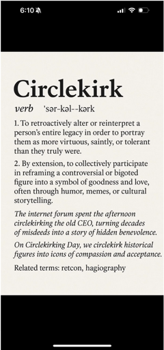 Washedupcynic@lemmy.ca to Political Memes@lemmy.worldEnglish · 19 days agoCirclekirk has entered the lexiconlemmy.caimagemessage-square9linkfedilinkarrow-up1302