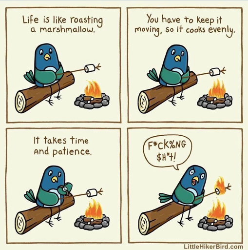 Yeah seriously, isn’t that how you’re supposed to roast a marshmallow? Dip it in the flame and then blow it out once it’s cooked to your liking. I don’t understand why the bird is upset. It’s not a proper roasted marshmallow if it doesn’t catch on fire.