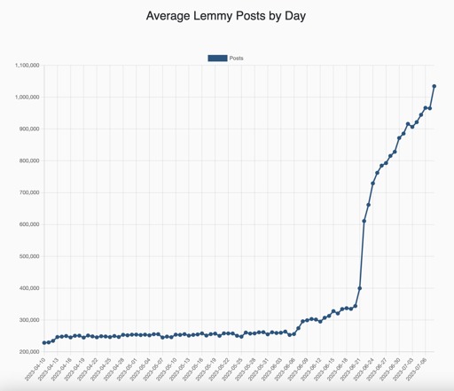 Lemmy just reached a new milestone: 1 million posts, across 1,323 servers.
