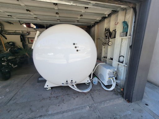 I regret not getting clearer pictures to zoom in and see the words on the instruments but I felt the need to be discreet as I was just walking by, these ocean-front home garages are rarely/NEVER left open unattended. What is this mystery chamber?