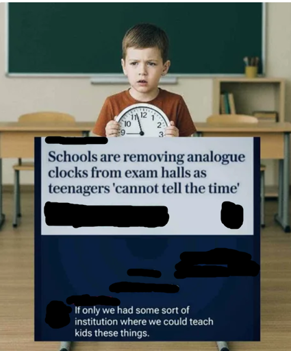 Every year I taught for the past 30 years I have heard this but I will say that every year I had to go over how to read a clock at the beginning of the year and every time a kid would ask me what time it is I would point at the clock and ask them what time they think it is? At least they left the class knowing how to read a clock even though they were shit at writing essays.