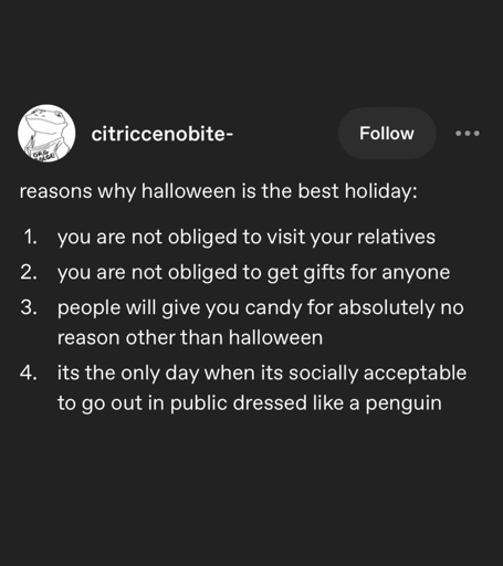 “If you aren’t willing to penguin on Arbor Day, you don’t deserve to penguin on Halloween.”