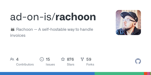 adO.Nis@lemmy.dbzer0.com to Open Source@lemmy.ml · 26 days agoRachoon - Self-Hostable Invoicing made simplegithub.comexternal-linkmessage-square1linkfedilinkarrow-up125 cross-posted to: [email protected]