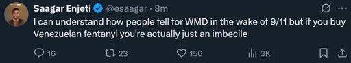 2·3 days agoIf Trump said Venezuela was flooding the US with weed, Saagar would have supported the invasion