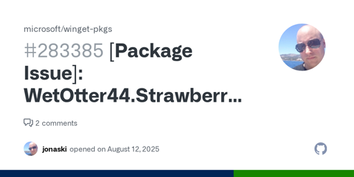 3·8 months agoto streamline things the winget for new strawberry with latest update that paywalled is live https://winstall.app/apps/WetOtter44.StrawberryMusicPlayer.MSVC