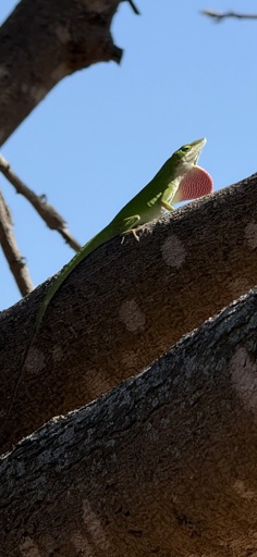 Based on the number of anoles, skinks, geckos, and Texas spinys in our yard, I’m guessing that little display was for someone else.